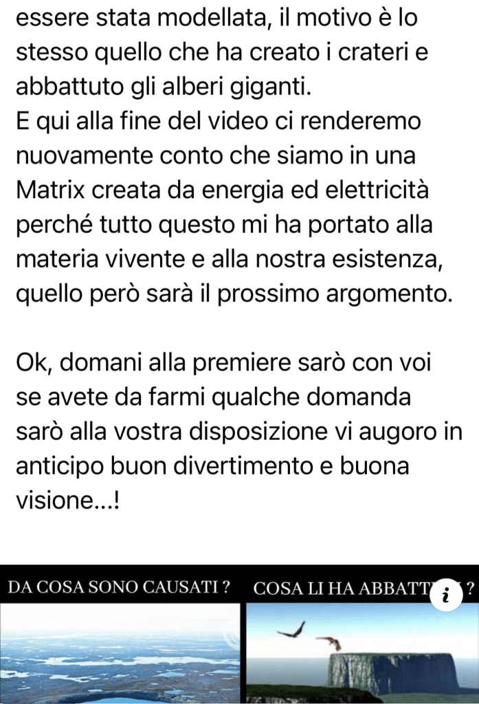 Nei prossimi capitoli ne analizzeremo le caratteristiche in modo più approfondito, ma prima è d’obbligo un avvertimento: l’esposizione prolungata ai concetti e alle teorie espresse dal Complottista Evangelico, oltre a causare effetti indesiderati sulle normali funzioni fisiologiche, potrebbe dare la sensazione di trovarsi all’interno di un crossover tra Blade Runner e Idiocracy. Prima di approcciarcisi è consigliabile costruirsi un totem come in Inception o, in alternativa, un gatto che vi riporti alla realtà con un graffio.