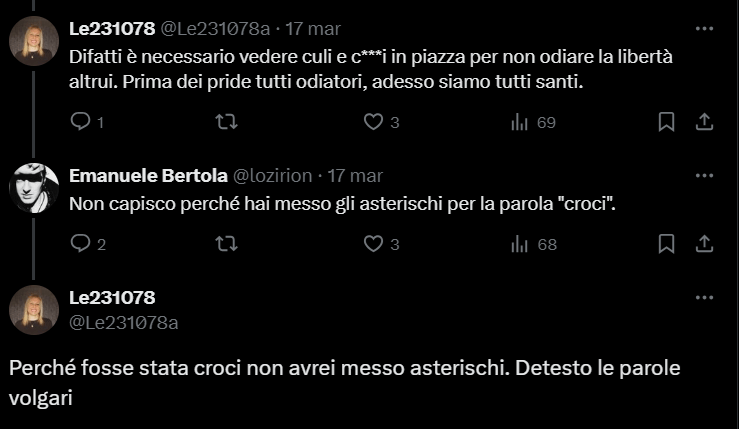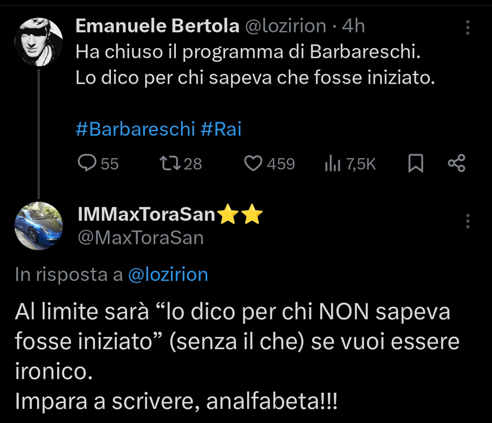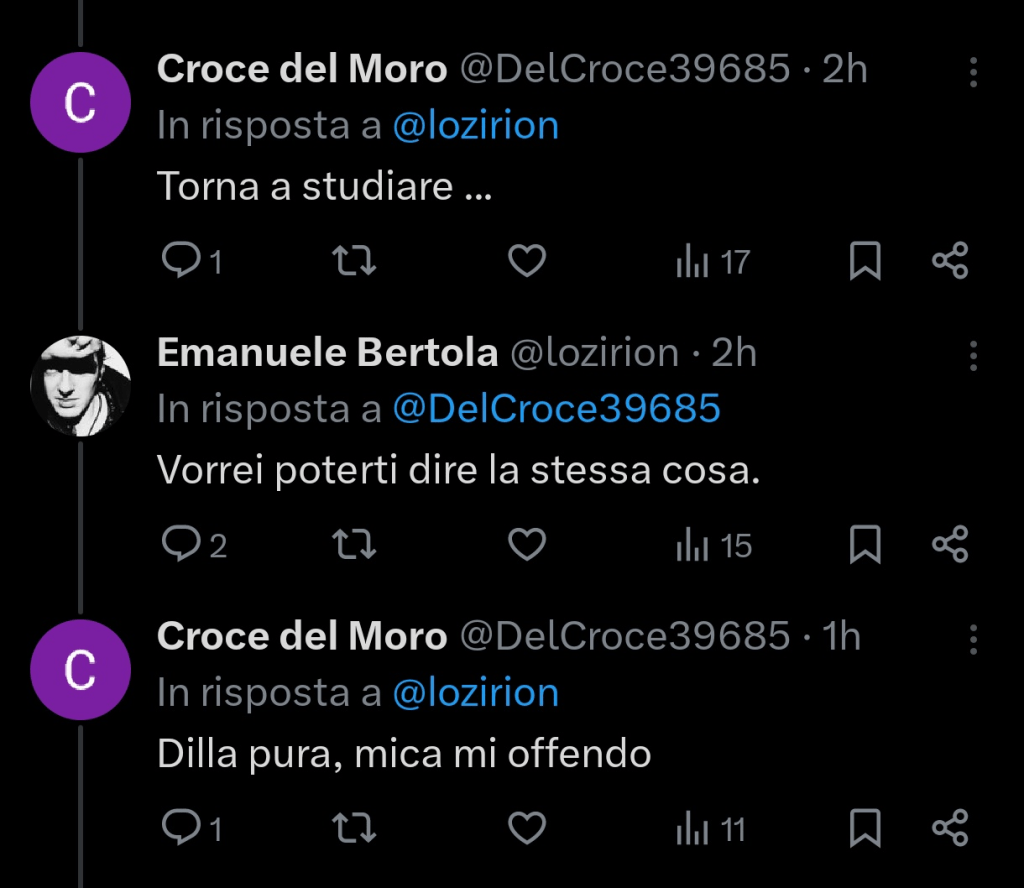 Più interessante e divertente – ma potenzialmente dannoso per la vostra sanità mentale – è invece l’approccio hardcore. A differenza del soft, qui l’intento è il volontario dileggio del soggetto, che in casi estremi può diventare vera e propria umiliazione pubblica. Non ci sono regole d’ingaggio, ma vale la diretta proporzionalità: maggiore è il sarcasmo, maggiore sarà la sguaiatezza della replica (che arriverà, non dubitatene). È un approccio che può dare grandi soddisfazioni, nonché fungere da esercizio di stile se dovete allenarvi per il tiro al piccione, ma mi preme sottolineare che l’intensità e la durata dello scontro potrebbero trascinarvi verso chine sempre più scivolose, perciò ricordate: calcate la mano responsabilmente, o da un momento all’altro potreste trasformarvi in Vittorio Feltri.