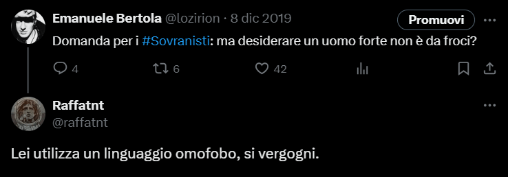 Come vedremo nei prossimi capitoli, il soggetto non è necessariamente un totale inetto. Potrebbe avere una discreta padronanza del linguaggio, a volte addirittura ottima, che però andrà sprecata durante le interazioni – a causa di riflessi condizionati, tachicardie di dubbia origine e conti in sospeso con le versioni del ginnasio – a favore di risposte sguaiate e ridicoli processi al lessico dell’interlocutore.